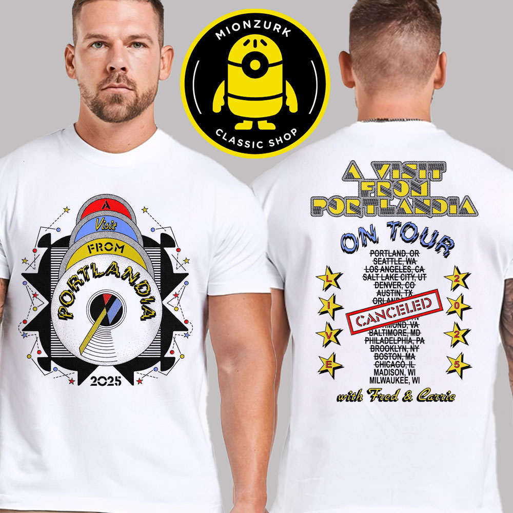 Celebrate the quirky humor of Portlandia with the A Visit From Portlandia Merch Tee On Tour Live 2025 Schedule Canceled With Fred And Carrie Two Sided Unisex T-Shirt. Featuring exclusive artwork inspired by the comedy duo Fred Armisen and Carrie Brownstein, this two-sided design captures the playful spirit of the show’s 2025 live tour. Printed on soft, breathable fabric, the tee offers comfort and durability that makes it perfect for casual wear, concerts, or adding to your Portlandia memorabilia collection.