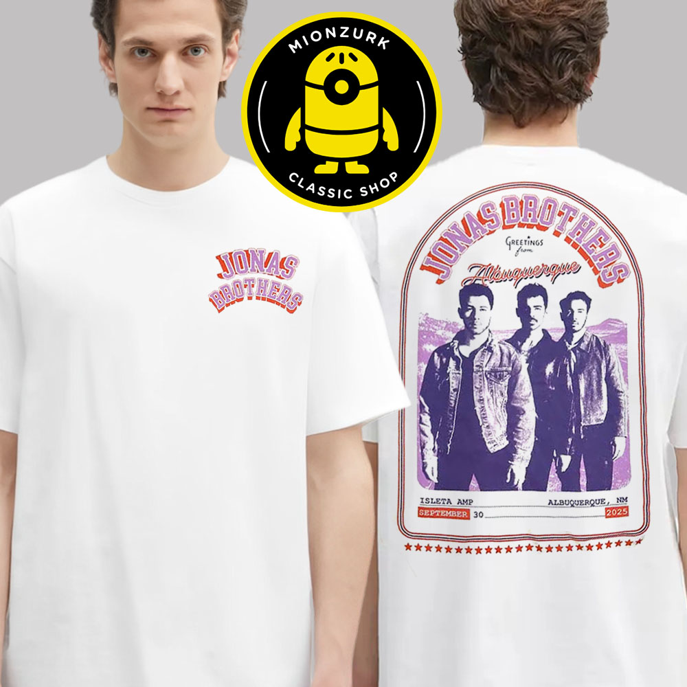 Mionzurk: About Jonas Brothers Merch City Tee Greetings From Albuquerque MN At Isleta AMP On September 30 2025 Two Sided Unisex T-Shirt Introduction